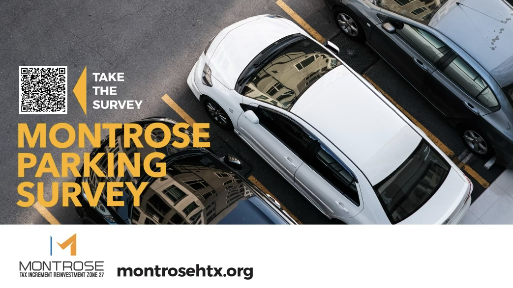 As part of this effort, the TIRZ is inviting the community to complete a short online survey to share feedback and experiences related to parking in Montrose. The survey takes only a few minutes and will remain open through December 15, 2025.